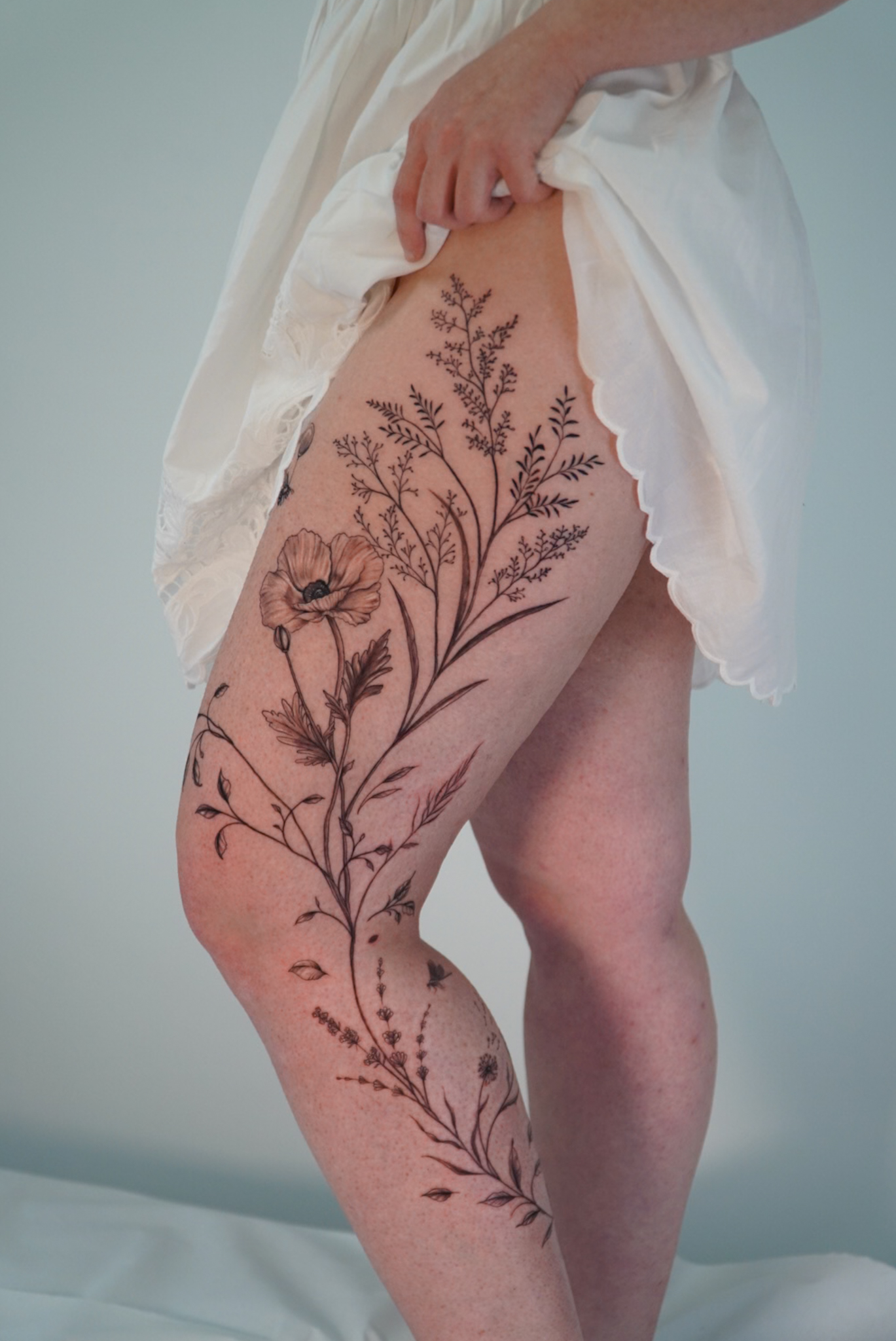tatuaje floral en toda la pierna amor por el ornamental