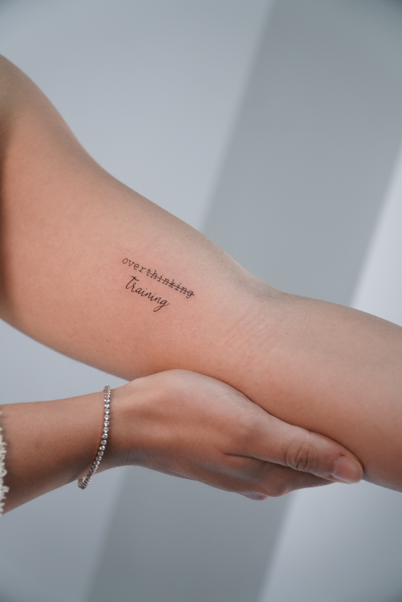 palabras tatuadas en linea muy fina para lograr un tatuaje elegante y discreto