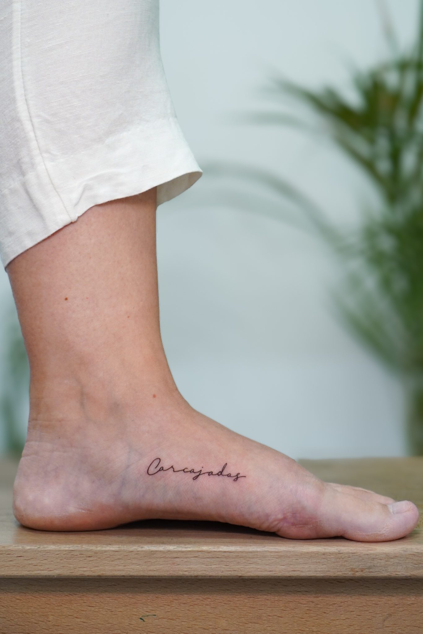 tattoo palabras en el empeine logrando una pieza fina elegante y discreta