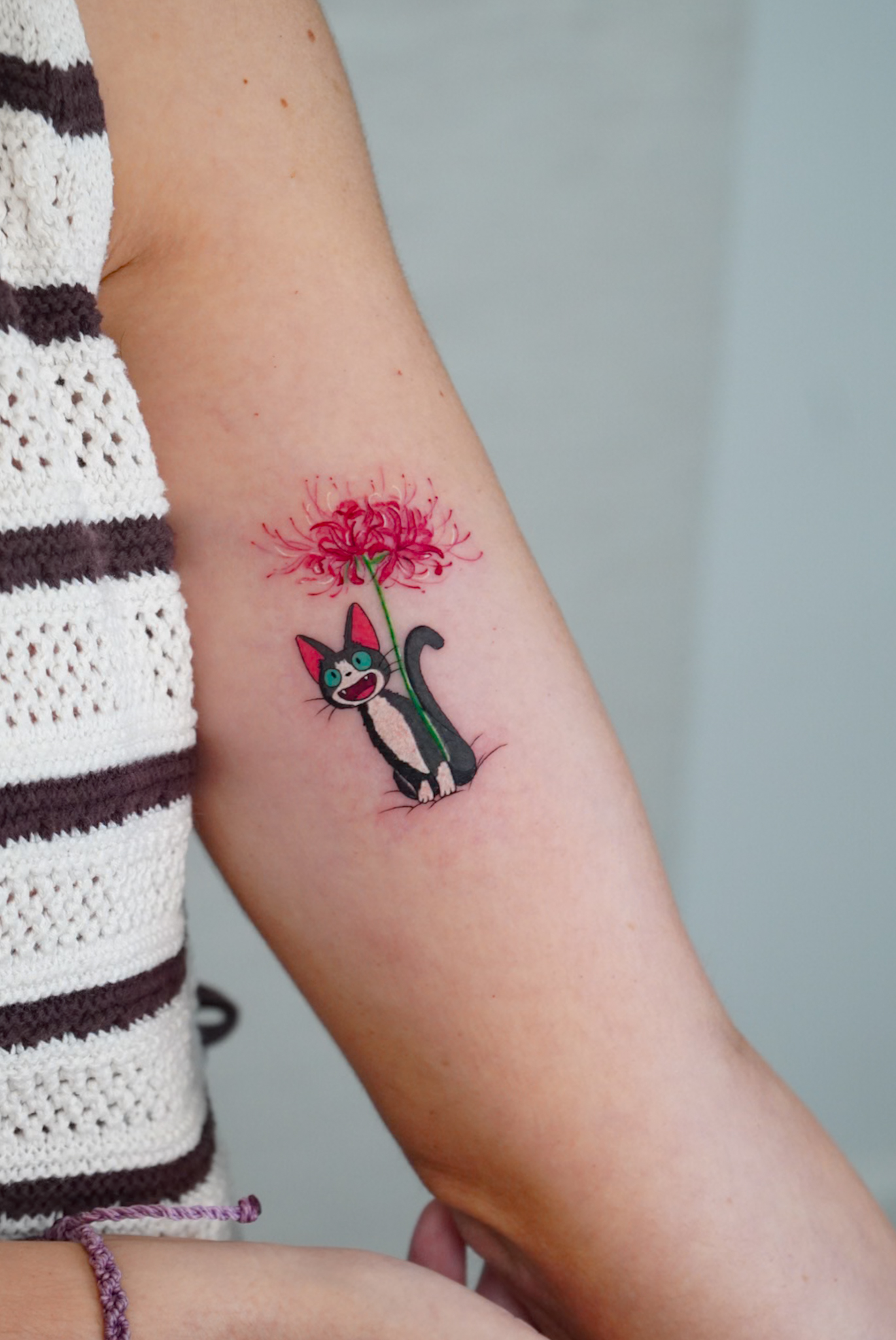 representacion de su anime preferido a color en un tatuaje